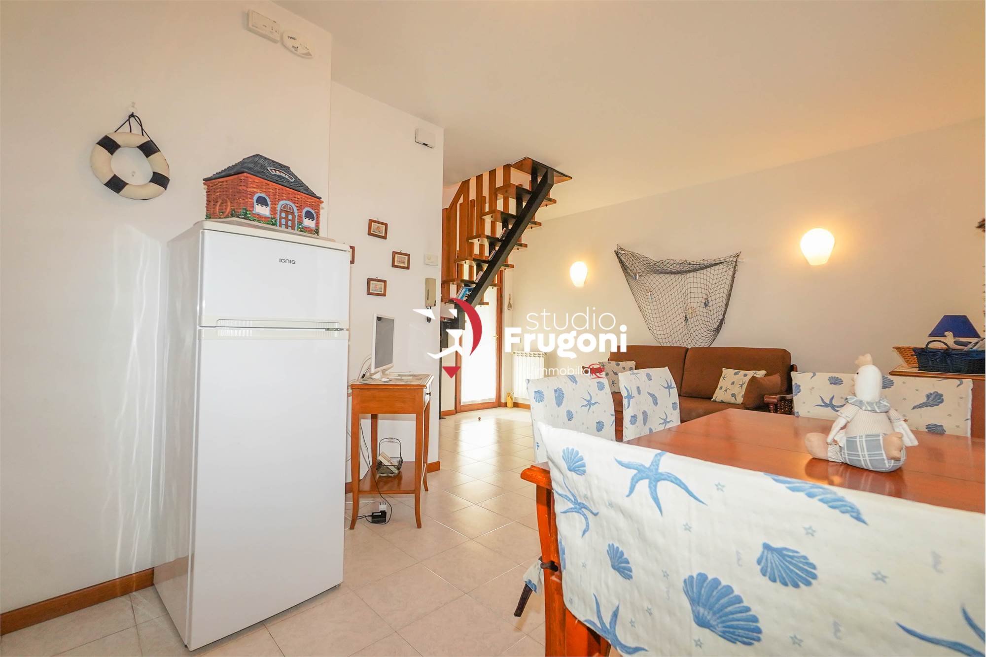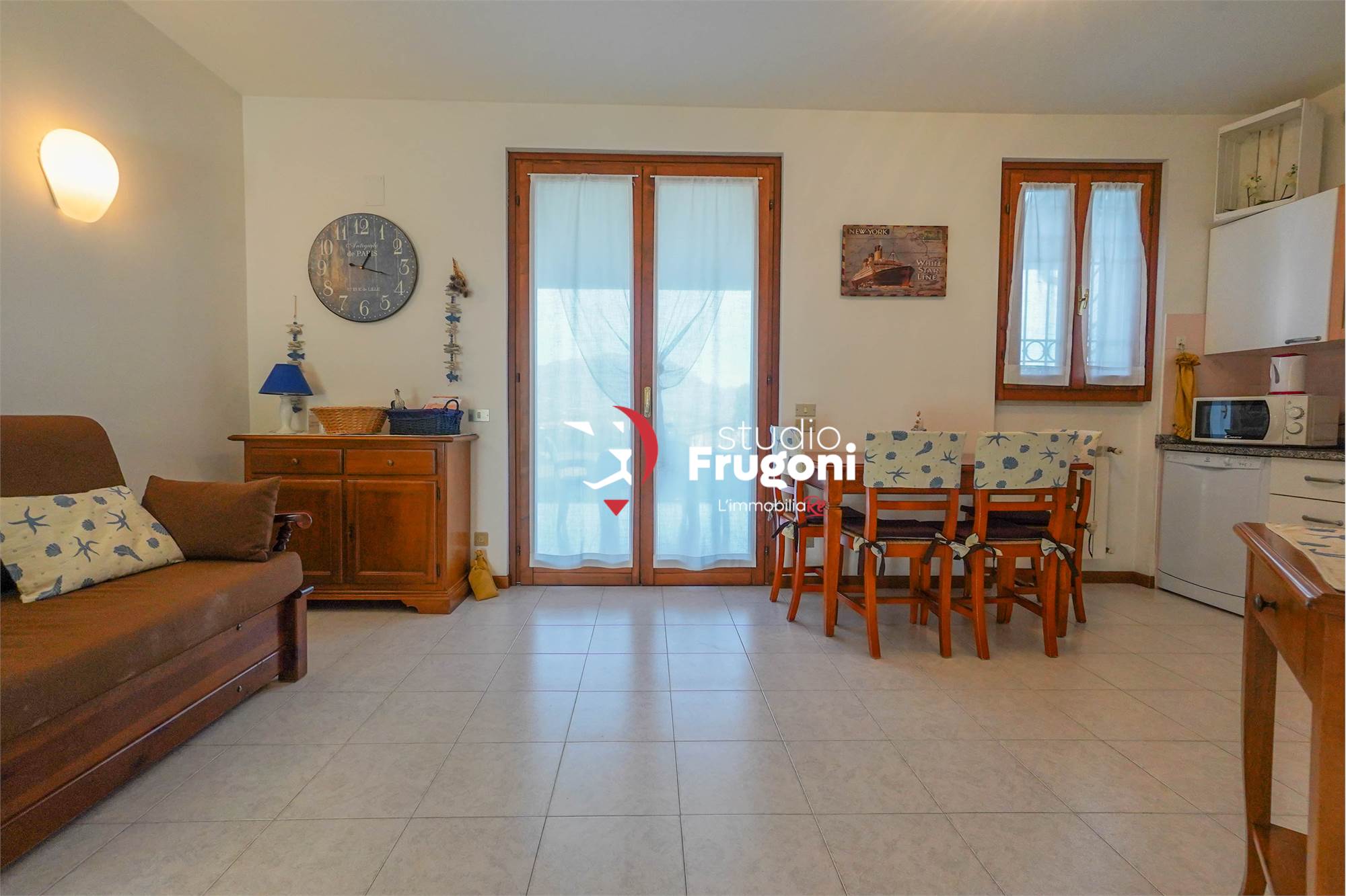 Set within a residential complex in perfect condition, featuring a communal swimming pool and extensive green areas, and consisting of only 12 units, this first-floor apartment offers a covered loggia with lake view, an attic used as a second bedroom, and a spacious basement room with bathroom, suitable as a study or guest accommodation.