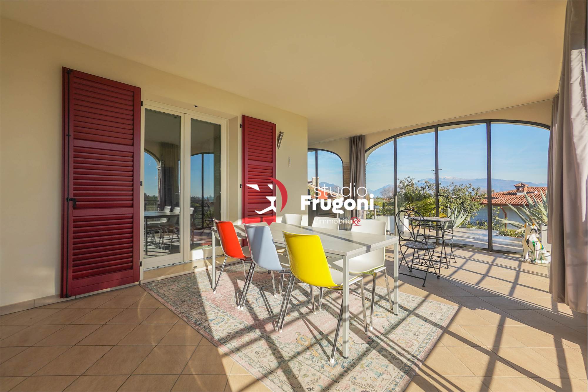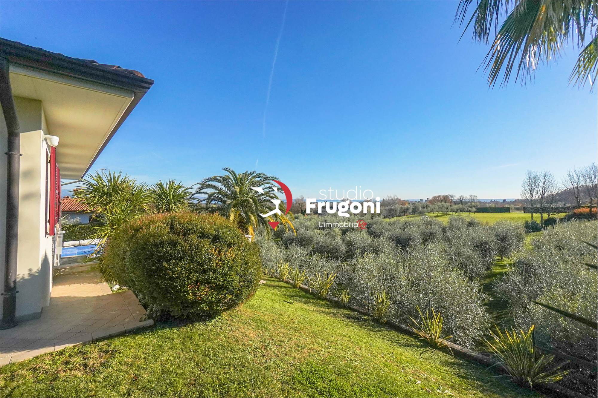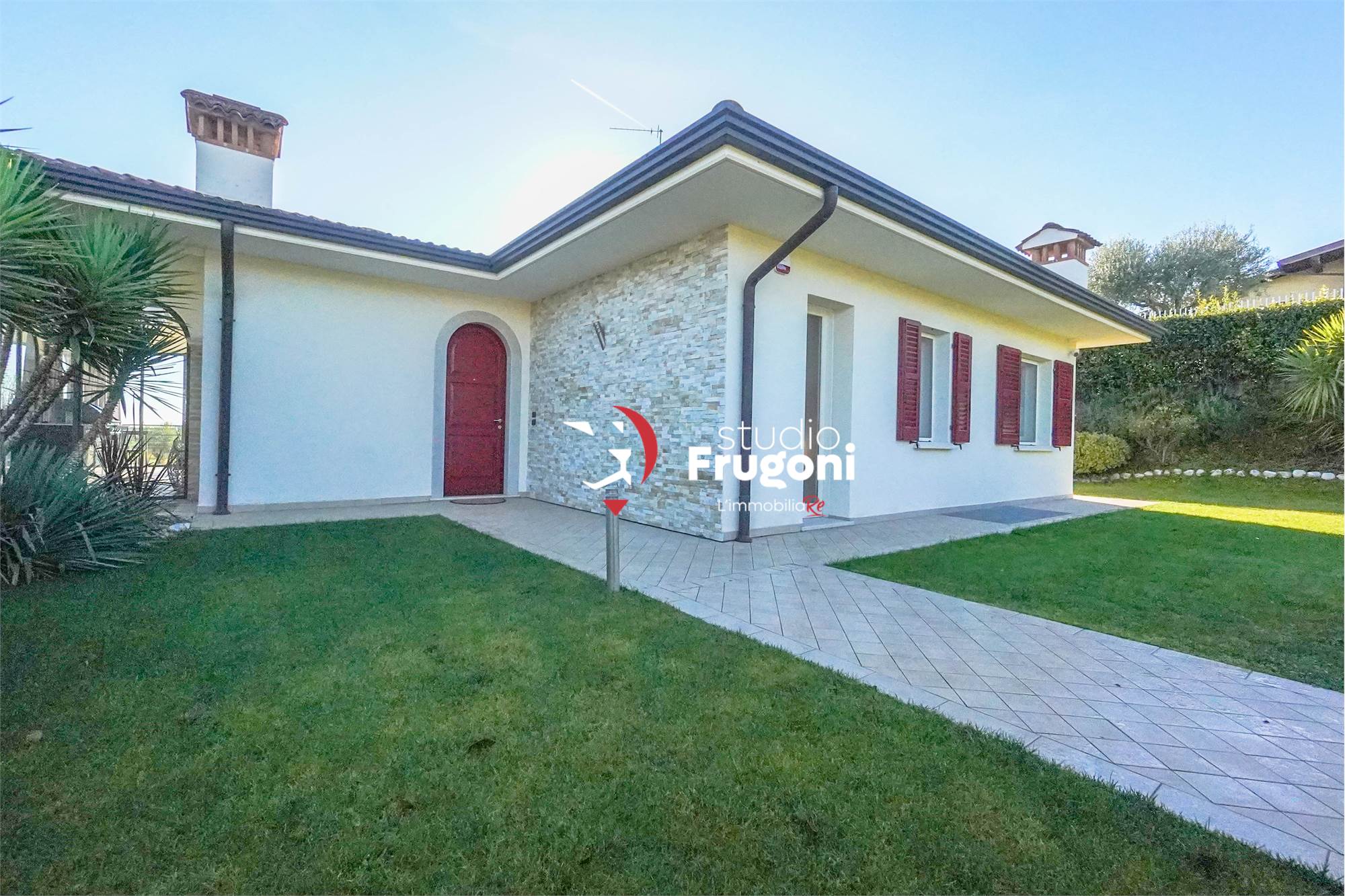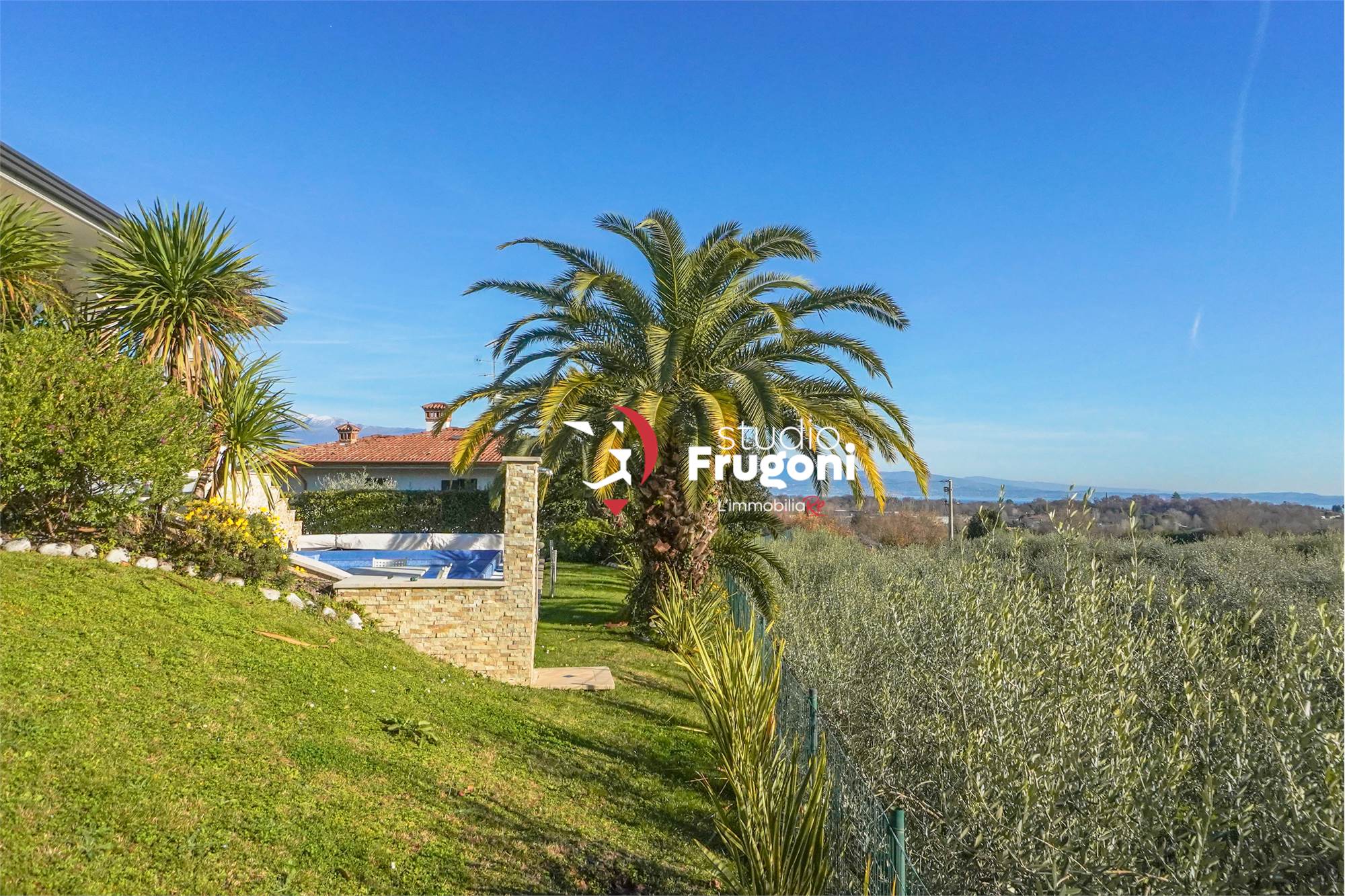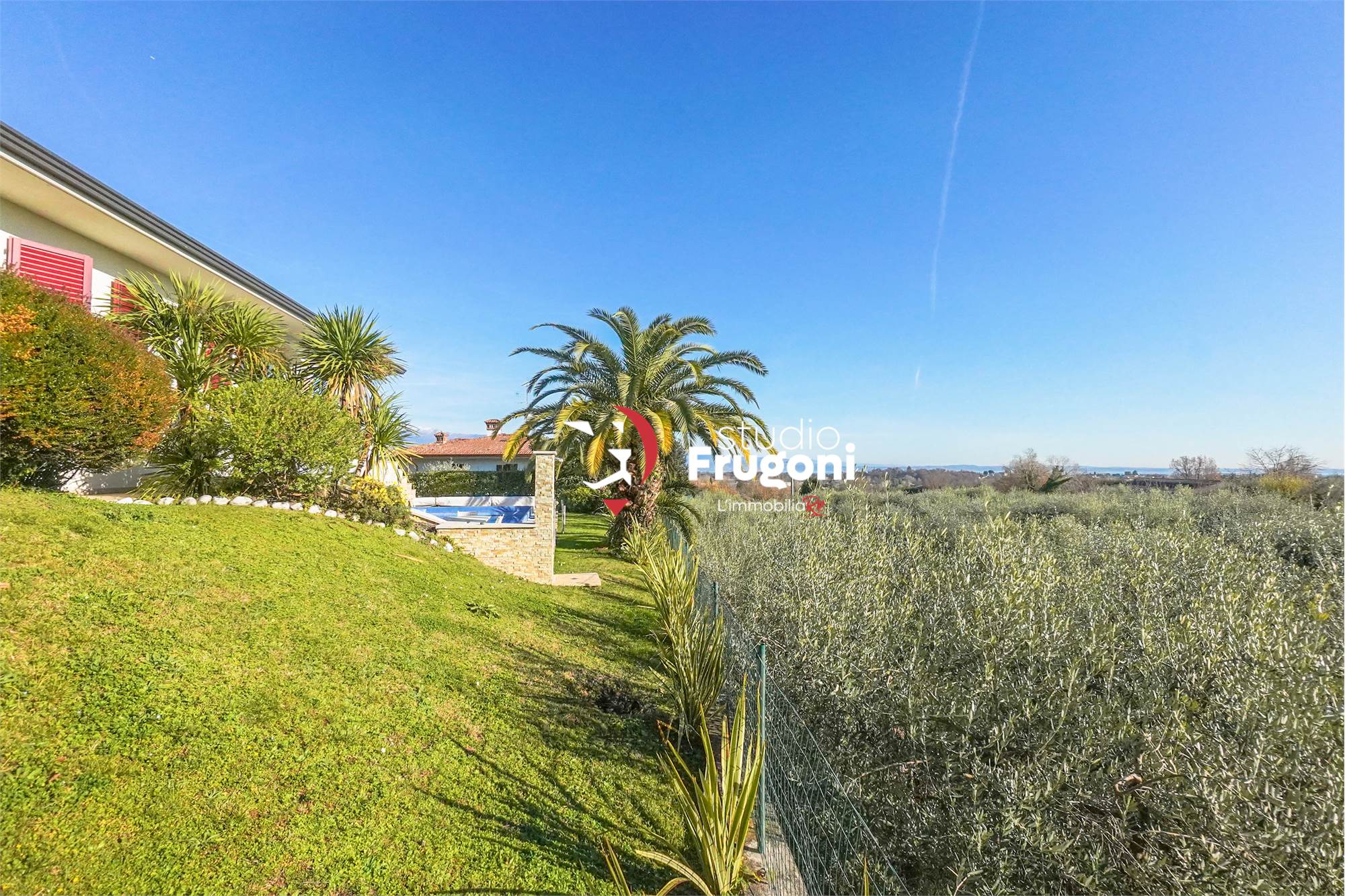 La villa è in perfette condizioni di manutenzione, con molta privacy, in posizione priva di ogni disturbo, con un affaccio panoramico sul lago e sui paesaggi collinari e caratteristici della Valtenesi (confina con uno splendido uliveto). Si dispone su di un unico piano, la zona giorno, sala ampia con cucina separata si collega ad un ampio portico con veranda; al piano sono presenti due camere matrimoniali ognuna con il proprio bagno privato, uno studio- camera ospiti, un bagno di servizio.