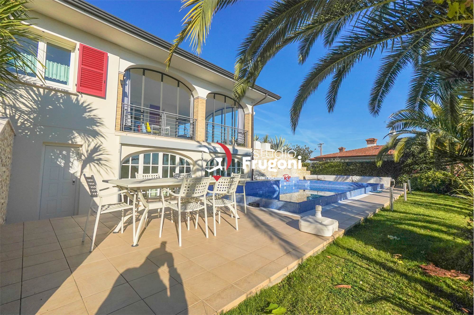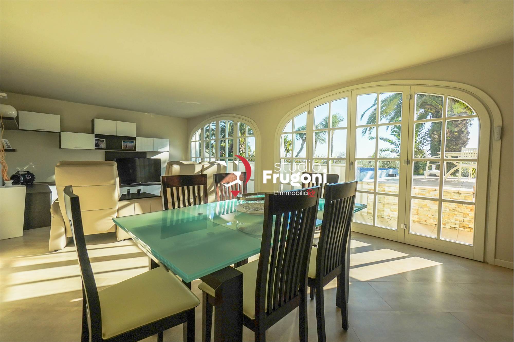 Piscina a sfioro. La villa è dotata di impianto d'allarme, pannelli solari, impianto di aria condizionata, impiano di riscaldamento a pavimento.
