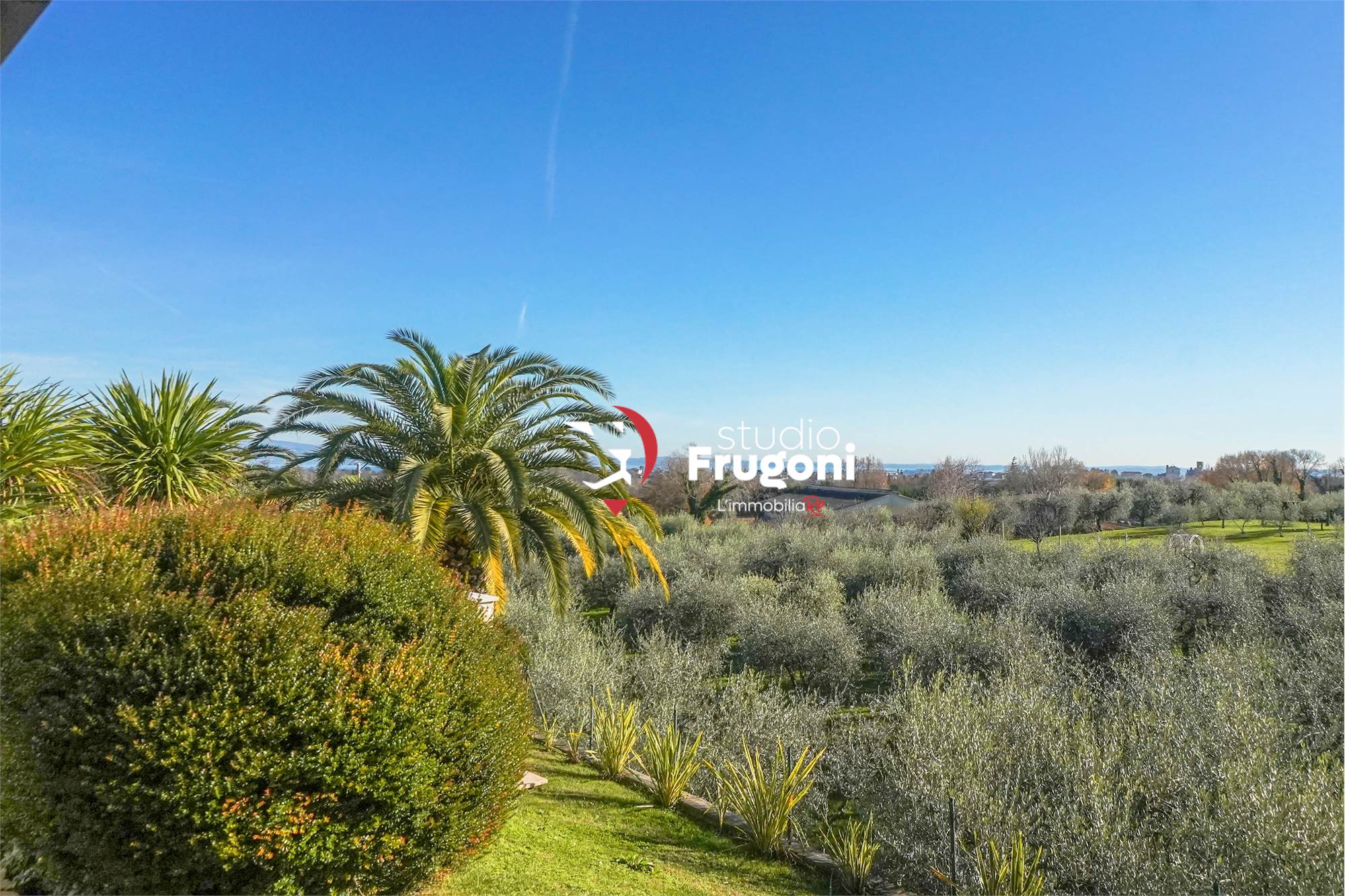 SOIANO DEL LAGO (BS) - In posizione indisturbata, con panoramica vista lago, affacciata sugli uliveti, villa prestigiosa su di un unico piano con dependance per gli ospiti, con piscina privata riscaldata, composta da: